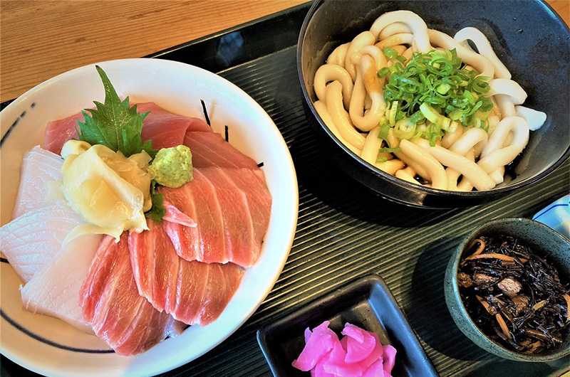 食工房 やまと茶屋は、伊勢神宮 外宮より車で約10分。1978年創業の伊勢うどん店です。老舗の味を受け継ぎつつも、常に新しいメニューをご提供することが当店のポリシー。数年前よりマグロの卸業をスタートさせ、マグロを使った多彩なメニューもお楽しみ頂けます。赤身やトロ、絶品のマグロをぜひご賞味ください。伊勢うどんとセットになったメニューも人気です。